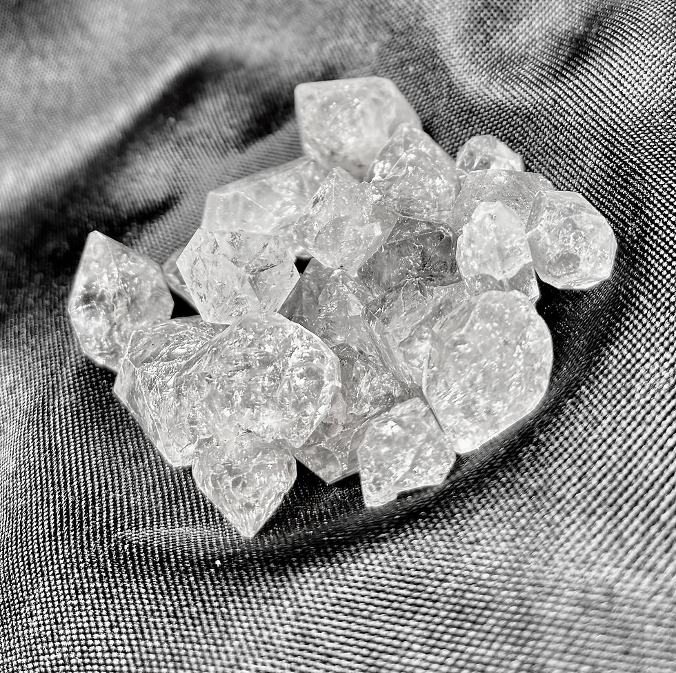 Herkimer diamonds are a type of quartz found near the Mohawk River in Herkimer County, New York. They are double terminated , a point at each end. This stone has high vibrations and promotes connections with one's higher